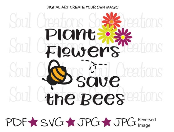 Plant Flowers Save Bees Digital Art Svg Cut File Diy Etsy
