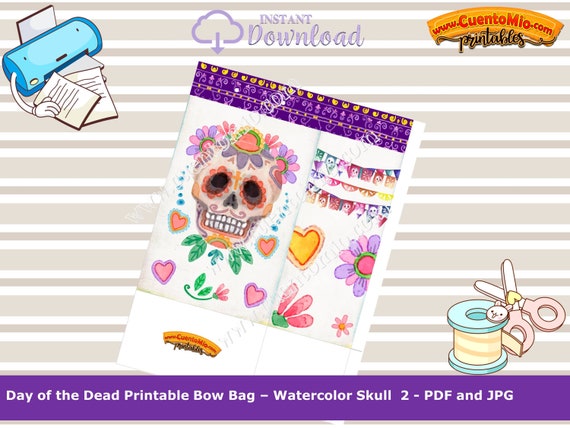 Bolsa Imprimible Dia De Muertos Bolsa De Calavera Estilo Etsy