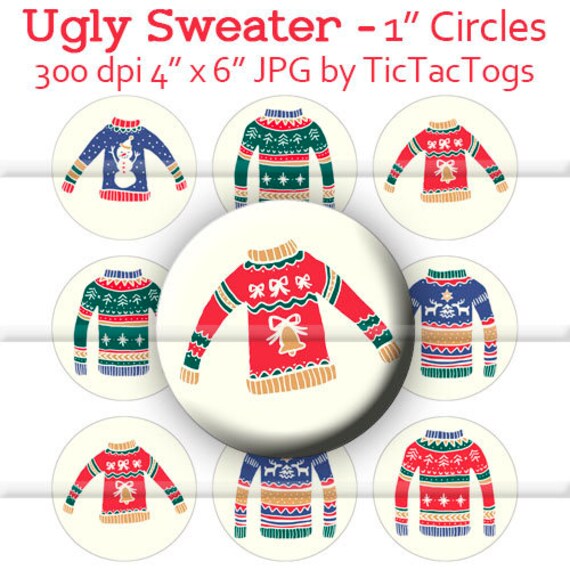 Ugly Sweater Bottle Cap Images 1 Circles Digital Art Etsy