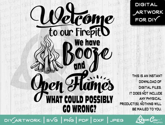 Svg Welcome To Our Firepit We Have Booze And Open Flames Etsy