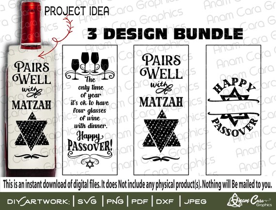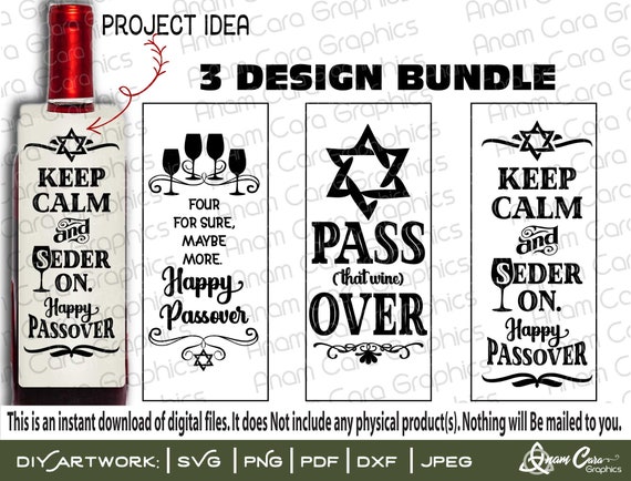 Bundle Of 3 Passover Designs 1 Cut Or Print Diy Art Fun Wine Etsy